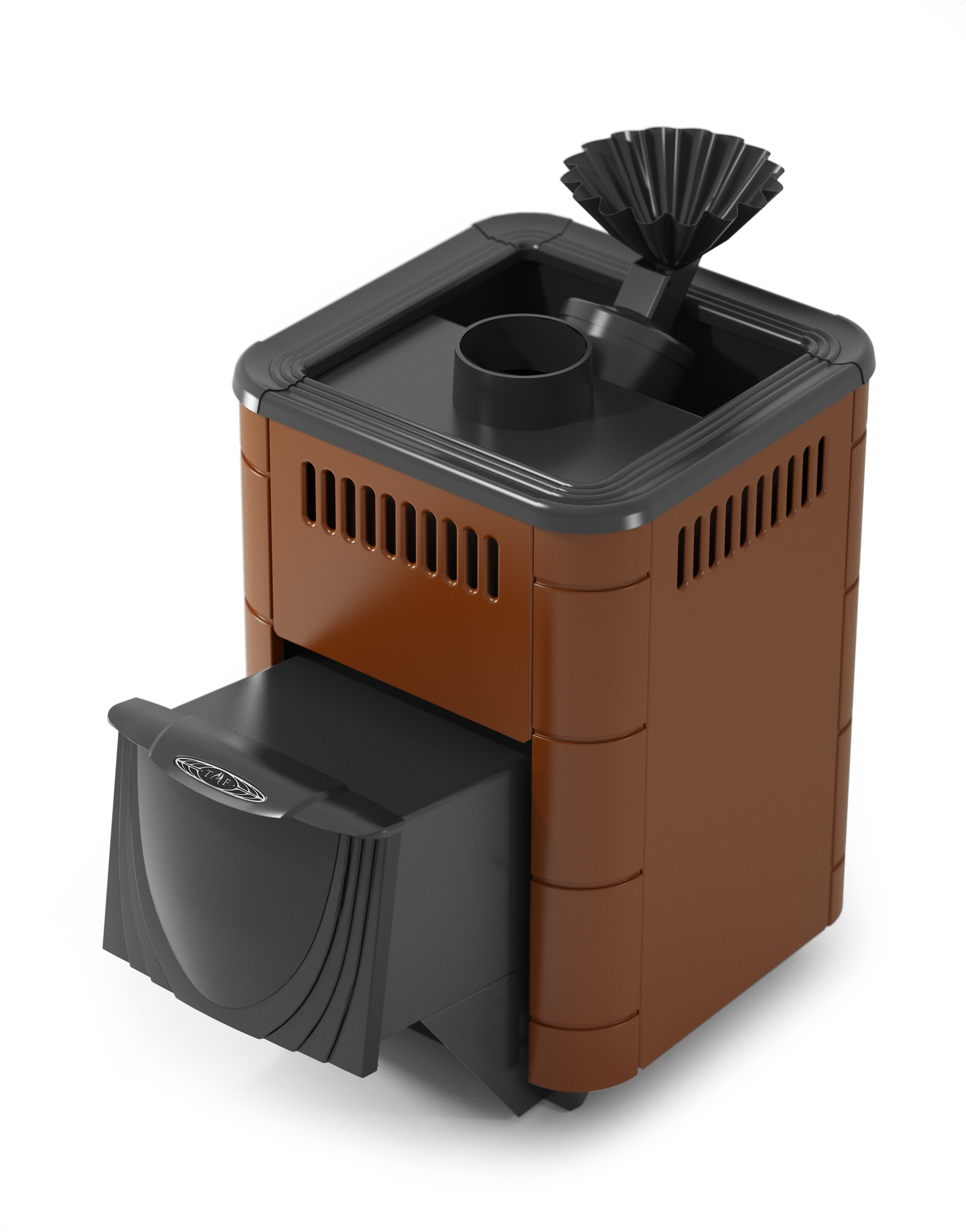 Все модификации печей cо стандартным топливным каналом комплектуется стандартной дверцей «антрацит» в цвете кожуха "терракота" и дверцей из нержавеющей стали - в цвете кожуха "антрацит".